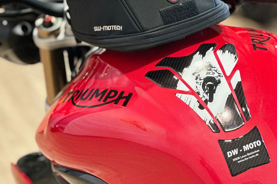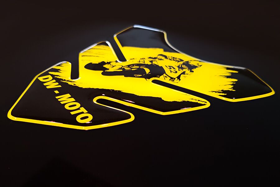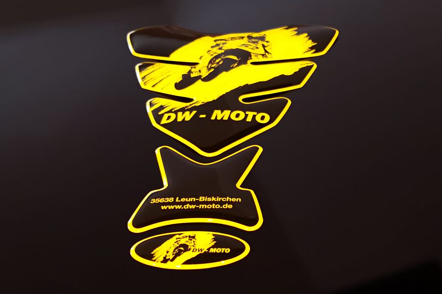 Entdecken Sie maßgeschneiderte Aufkleber, Doming Etiketten, Tankpads und Schlüsselanhänger mit individuellem Logo- und Adresseindruck, exklusiv für Motorradhändler. Setzen Sie Ihre Firmenpräsenz wirkungsvoll um. Unsere weichen Schlüsselanhänger schonen die Gabelbrücke, und unsere Tankpads sind mittlerweile in 20 verschiedenen Versionen für eine Vielzahl von Tankformen erhältlich. Qualität, Schutz und Individualität für Ihr Motorradgeschäft